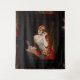The Studio Mirror de l'artiste peintre britannique Albert Henry Collings (1868 - 1947); spécialisé dans la peinture de figures et de portraits. Il s'agit d'un beau portrait d'une jeune femme des années 1920 vêtue de la tenue de retraite du jour, qui comprend un casquette étincelant, une robe de nuit pure, et une robe brodée en regardant dans un miroir de main tout en ajustant son casquette sur son oreille gauche tout en se penchant sur un coffre.