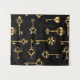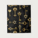 Seamless pattern of antique, gold and silhouette keys on black background.