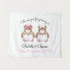 Bannière personnalisée du mariage lesbien montrant deux mariées en peluche. Une belle décoration pour un mariage gay. Des cartes de lieux et des invitations sont également disponibles dans ce design mignon.