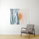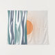 Illustration Abstraite du lever du soleil avec soleil orange et décoration des vagues bleues, blanches et turquoise