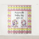 L'image de devant montre deux licornes heureuses, avec des pâquerettes, sur un fond dégradé. Le texte sur cette image est personnalisable. Derrière l'image de devant se trouve un motif comprenant les 2 licornes heureuses sur un fond dégradé. Les images sont dans des couleurs pastel. Parfait pour être inclus dans un événement sur le thème des licornes !