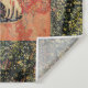 Tapisserie antique tissée à Bruxelles vers 1500. Les remous floraux verts fleurit avec une princesse et une licorne.