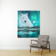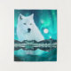 Tenture Loup arctique et nuit magique avec lumières boréal