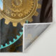 Luciole à vapeur avec ailes bleues transparentes et ampoule verte sur arrière - plan usé, marron, texturé. Style Steampunk.