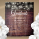 Une toile de fond de photo de fête de diplôme rustique élégant avec des lumières de chaîne sur un fond de panneaux de bois. Conçu par Thisisnotme©