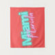 Design typographique moderne et coloré caractéristiques "Miami Florida" en aqua et texte de néon rose sur saumon / arrière - plan de corail