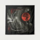 La lune de sang illumina le chemin sur la forêt noire dans la nuit.