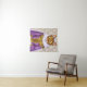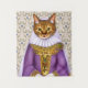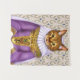 Tapisserie dans le portrait d'un chat gingembre, habillé comme une mariée aristocratique, médiévale, dans une robe violette, minutieusement taillée, et un voile