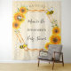 Tapisserie élégante et amusante pour une baby shower d'été. Fond jaune et blanc avec un motif en nid d'abeille. Neutre en termes de sexe, célébrant une petite fille ou un petit garçon. Avec un cadre géométrique en faux or. Décoré de tournesols aquarellés rustiques jaunes et orange et de joyeuses abeilles. Avec le texte : Future maman et le nom de la mère. Personnalisez et ajoutez le nom de la future maman et une date. Peut être utilisé comme décoration murale pour une douche de mariée ou comme toile de fond pour photos.