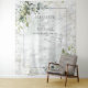 Créez les photos de mariage parfaites avec cette tapisserie de fond tendance et élégante, avec des éléments botaniques de verdure d'eucalyptus bleu poussiéreux clair, un cadre bleu poussiéreux et un fond en marbre de Carrera faux. Partie d'une suite d'invitations de mariage. Copyright Invitations Élégantes, tous droits réservés.