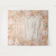 "Tapisserie de fond pour photos de mariage en bois rustique avec fleurs de pampas et décor floral rose blush bohème." Lavis aquarelle pêche tendre avec des roses rose blush, jaune beurre et blanc cassé sont associés à l'herbe de pampas, aux fougères et au feuillage d'eucalyptus pour un fond de photo époustouflant pour vos invités de mariage. Créé à partir d'une œuvre aquarelle peinte à la main par l'artiste internationalement connue et licenciée, Audrey Jeanne Roberts, copyright.
