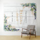 Élégant fond en bois blanc rustique. Décoré de feuilles d'eucalyptus peintes à l'aquarelle verte, de brindilles, de verdure et de feuilles dorées fausses. Personnalisez et ajoutez le nom de la future mariée et une date. Lettres noires et dorées. Peut être utilisé comme bannière de bienvenue pour un mariage, comme décoration murale de fête ou comme toile de fond pour photobooth.