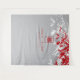 Tenture Mariage chinois Feuille gris et rouge bambou arriè