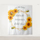 Tapisserie élégante et amusante pour une douche de mariage en été. Un fond blanc chic. Avec un cadre géométrique en faux or. Décoré de tournesols rustiques jaunes et orange à l'aquarelle et de joyeuses abeilles. Avec le texte : Future mariée et le nom de la mariée. Personnalisez et ajoutez le nom de la future mariée et une date. Peut être utilisé comme décoration murale pour la douche de mariage ou comme toile de fond pour les photos.