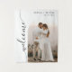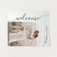 Tapisserie minimaliste de bienvenue mariage avec cadre photo en arc et élégant script de calligraphie verticale. Cette tapisserie s'ajoute à merveille à tous les mariages, offrant un accueil chaleureux à vos invités tout en offrant un bel ensemble de décoration. Le cadre photo en forme d'arc vous permet de présenter une photo spéciale du couple heureux, tandis que le script de calligraphie verticale ajoute une touche élégante. Son design minimaliste lui permet de compléter n'importe quel thème ou style mariage. Faites une déclaration avec notre tapisserie minimaliste mariage de bienvenue à votre journée spéciale.
