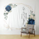 Fond de photo de mariage floral bleu marine foncé avec un élégant bouquet de bleu marine, bleu roi, blanc, or, champagne ivoire, rose blush, rose, hydrangea, renoncule, pivoine, boutons de fleurs et feuilles d'eucalyptus vert sauge et cadre géométrique neutre à paillettes rondes à l'aquarelle élégante. Veuillez me contacter pour toute aide de personnalisation ou si vous avez besoin d'un autre produit avec ce design.