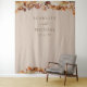 Cette élégante tapisserie de mariage | toile de fond de photomaton présente des feuilles de couleur orange brûlé et terracotta peintes à la main à l'aquarelle, des dahlias crème et beige, et de belles roses de couleur rouille sur un fond taupe avec les noms des mariés et la date du mariage. Trouvez des articles assortis dans la collection Taupe Automne Romance.