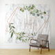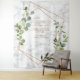 Moderne et tendance, ce design de tapisserie de mariage présente un motif géométrique en cuivre faux orné de verdure d'eucalyptus à l'aquarelle, sur une texture de marbre blanc faux. Les noms des mariés et certains détails du mariage sont dans une couleur cuivre assortie. Copyright Elegant Invites. Tous droits réservés.
