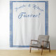 Le design présente l'élégance du marbre bleu et gris comme arrière - plan à une forme rectangulaire. Les noms de mariée et de mariée sont présentés comme une arche au-dessus du mot personnalisable "Forever!". Conçu pour coordonner avec la Suite Mariage Monogrammé en marbre bleu et gris.