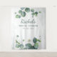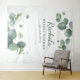 Grande décoration murale de fête et bannière pour une fête prénuptiale tendance à thème botanique moderne. Avec verdure eucalyptus et fond aquarelle rose pâle. Modifiez facilement les détails en cliquant sur le bouton "Personnaliser" ci-dessus.