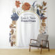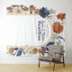 Un beau tapis de fond de mariage floral à l'aquarelle pour des photos amusantes avec les invités de mariage. Typographie et polices modernes tendance. Modifiez facilement le modèle avec les prénoms, le nom de famille et la date de mariage des mariés. Tapisserie de mariage fleurie en terre cuite bleu poussiéreux à l'aquarelle. La couleur de la police est Hex 2B324B.