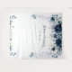 Un fond floral aquarelle bleu poussiéreux et navy pour photos de mariage, avec vos noms et date numérique le long du haut.
