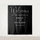 Cette toile de fond en mariage de script noir et blanc élégant peut être personnalisée avec toutes vos informations spéciales de jour de mariage. Conçu par Thisisnotme©