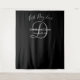 Amusez-vous à prendre des photos à la réception de mariage avec ce fond élégant à motif script et simple monogramme formel blanc gris noir "D" que vous pouvez utiliser pour le Photobooth, Accessoire photo. Vous pouvez le personnaliser avec le nom de la mariée et la date. Elke Clarke @ Pour d'autres initiales, veuillez contacter le concepteur. Utilisez le menu de personnalisation pour personnaliser davantage les couleurs et les polices.