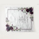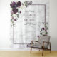 Créez les photos de réception parfaites avec ce design de tapisserie tendance mettant en vedette des éléments botaniques floraux violets prune et eucalyptus, des éléments de coin en poussière d'or faux, un cadre violet prune et un fond en marbre de carrera faux. Parfait pour les mariages d'automne et d'hiver. Copyright Elegant Invites, tous droits réservés.