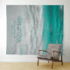 Décor de tapisserie blanc et turquoise sur la côte, sur le thème de la plage mariage. Eté marin nautique vagues tropicales accueil photo fond de cabine. Belle, chic, tendance, moderne, cool, élégante bannière personnalisée. M. et Mme, les noms et la date des douanes. Copyright de l'image Marg Seregelyi Photography.