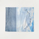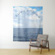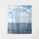 La conception de la tapisserie de mariage thème sous les mers présente un arrière-plan d'image réaliste du ciel rencontrant l'océan, un arc-en-ciel faible peut être vu sur la droite. Les noms des conjoints sont affichés dans une belle écriture bleue en forme d'arche dans le ciel. Conçu pour coordonner avec la suite de mariage sous les mers.