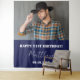 Une tapisserie pour une fête d'anniversaire de 21 ans (ou tout autre âge) pour les mecs. Un bleu marine. Personnalisez et ajoutez votre propre photo de haute qualité du garçon/homme d'anniversaire. Le texte : Le nom est blanc avec un script de style à la main moderne. Tempates pour un nom, âge 21 et une date. Peut être utilisé comme décor mural pour la fête ou comme fond de cabine photo.