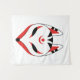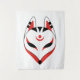 Masque de renard rouge, noir et blanc stylisé inspiré du masque traditionnel japonais kitsune.