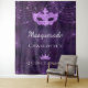 Pour une Quinceañera girly et glamour, fête d'anniversaire de 15 ans. Un motif de dentelle florale violet foncé comme arrière-plan. Décoré de fausse poussière scintillante, d'un masque de masquerade et d'un diadème. Personnalisez et ajoutez un nom. Peut être utilisé comme bannière de bienvenue, décoration murale de fête et comme toile de fond pour photomaton.