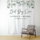 Tapisserie élégante de toile de fond pour photomaton de mariage avec eucalyptus aquarelle vert sauge, "Meilleur Jour Ever" dans un script moderne élégant, vos prénoms et la date.