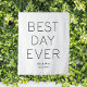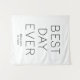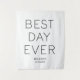 Toile de fond de mariage minimaliste blanc personnalisé avec la citation "meilleur jour" dans une police simple et minimaliste. Décoration de cérémonie ou de réception.