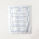 Tenture Menu Mariage de tissu bleu français avec fond tiré