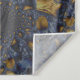 Métal liquide bleu nuit or et argent, motif abstrait fondu.
