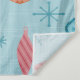 Un design de Noël moderne du milieu du siècle avec des ornements colorés d'arbres de Noël et des starbursts de Spoutnik, contre un arrière - plan bleu clair.