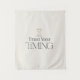 Create a peaceful, intentional atmosphere in your space with this minimalist motivational wall tapestry featuring the quote “Trust Your Timing.”