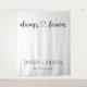Make your special day unforgettable with our elegant wedding photo backdrop. Featuring a chic Always & Forever calligraphy design with a delicate heart, this minimalist tapestry is perfect for reception decor, photo booths, or ceremony altars. Fully customizable with names and dates for a personal touch.