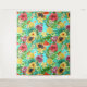 Tenture Mix-fruit tropical, fleurs et feuilles en bleu