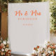 The Modern Coral Orange Mr and Mrs Wedding Backdrop features a clean white background with elegant coral orange script lettering. The design highlights “Mr & Mrs” with the couple’s last name and wedding date displayed in a modern and balanced layout.