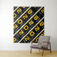 Graduation party step-and-repeat tapestry backdrop 68x80 inches in black, white, and yellow — bold all-over pattern featuring repeating diagonal stripes of "Congratulations," class year numerals, and "Class of" in high-contrast yellow and white on a dramatic black background. A dynamic, energy-charged backdrop equally suitable for a private graduation party, a school or class event, or a red carpet type celebration — guaranteed to make every photo memorable. Part of a complete graduation collection including announcements, invitations, thank you cards, party invitations, enclosure cards, envelope seals, favor boxes, favor tags, yard signs, and banners. Fully customizable for your Class of [Your Year] celebration. Need design support? Email remidevandesigns@gmail.com RemideVan©