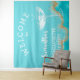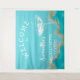 bannière de bienvenue personnalisée bannière de jeune fille avec une tapisserie de fête or et turquoise dans une pierre précieuse géode ou agate de luxe or et bleu turquoise vif coloré vif, avec un verre à cocktail est parfait comme toile de fond pour photo de fête de jeune fille. Célébrez votre douche de mariée dans le style avec le thème parfait de la fête cocktail dans un rose audacieux, le thème parfait pour la mariée vintage des années 70 et ses demoiselles d'honneur.