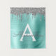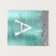 Tapisserie de monogramme et initiale en métal brossé pailleté sarcelle argenté et bleu aqua sarcelle métallisé faux foil. C'est le cadeau parfait pour un anniversaire sweet 16, un mariage, une douche de mariée, un anniversaire de mariage, une baby shower ou une soirée d'enterrement de vie de jeune fille pour quelqu'un qui aime le luxe glamour et les styles chics.
