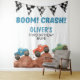 This fun birthday party backdrop features colorful monster trucks. Designed by Thisisnotme©