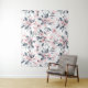 Tapisserie avec un élégant motif fait avec une aquarelle illustration de fleurs roses avec feuilles et tiges bleu-gris.