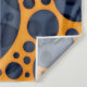 Un motif dynamique présente une série de cercles bleu foncé interconnectés, placés contre un arrière - plan orange vif, créant un contraste frappant. L'arrangement qui se recoupe donne un sens de profondeur et de mouvement. Illustration design de trous abstraits de lave orange et bleue minces. Mots clés : abstrait, points, géométrique, fou, orange, bleu, hallucinogène, trous, psychédélique, lave, trippy, trypophobie