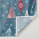 Motif de Noël d'hiver. Rouge stylisé, arbres de Noël verts, boules de Noël sur un arrière - plan bleu.